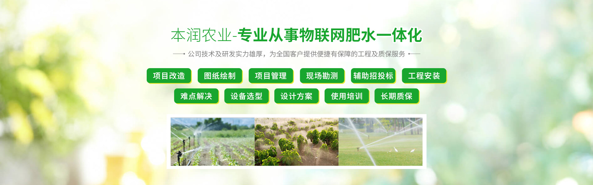 “用心做事,本潤農(nóng)業(yè)”追求無止境,學習無止境,創(chuàng)新無止境,本潤農(nóng)業(yè)將為您打造最專業(yè)最有保障的現(xiàn)代灌溉技術(shù)工程